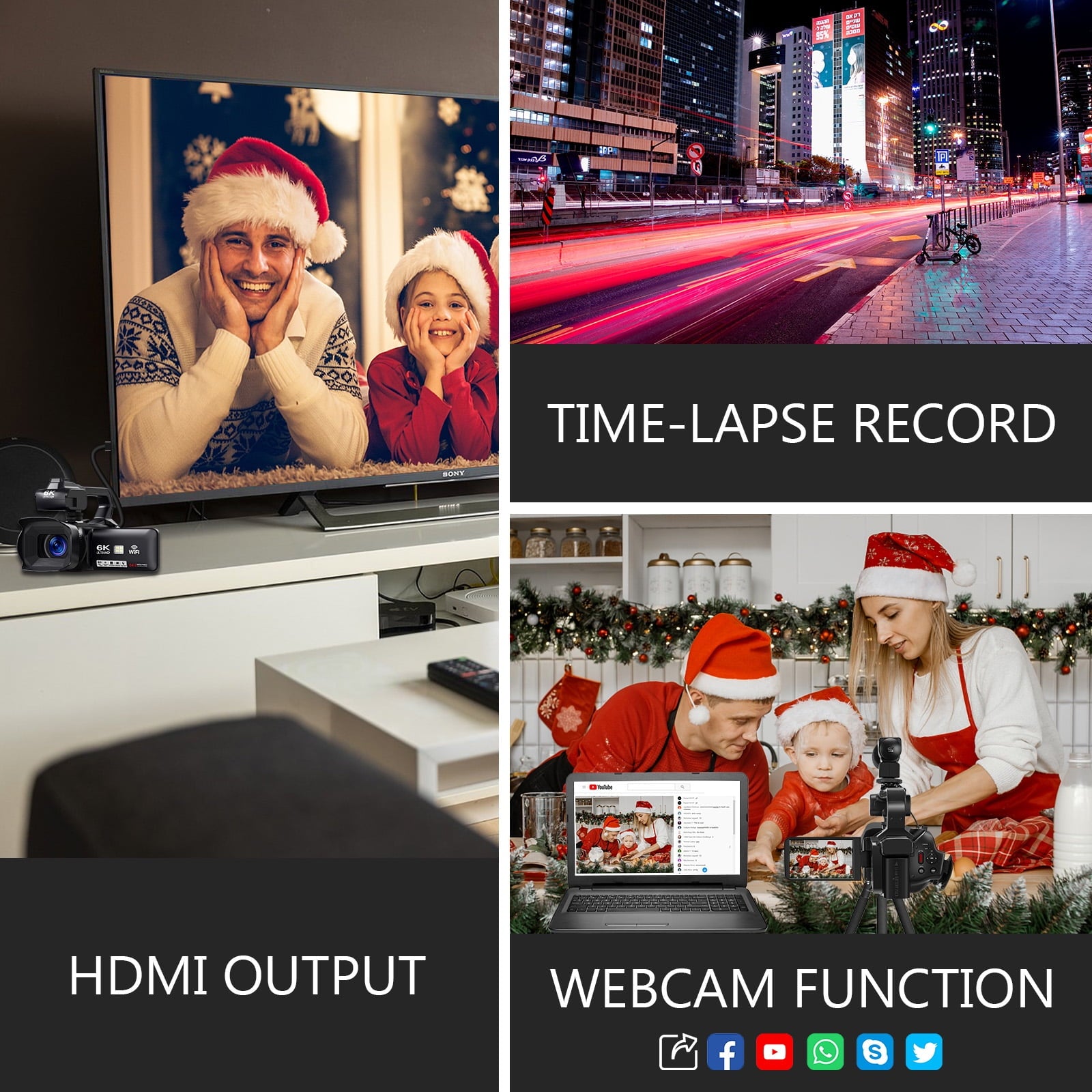 - Handheld Stabilizer and Hood & Versatility 6K camera: Elevate your filming experience with accessories like a handheld stabilizer and hood, ensuring steady shots and enhanced visuals. Perfect for capturing a wide range of events, from sports and family gatherings to travel adventures and YouTube videos. Additionally, the dedicated hood reduces glare in bright environments, delivering stunning, true-to-life images. Unleash your creativity with loop recording, time-lapse, slow-motion, and more, catering to your unique shooting needs. Plus, connect seamlessly to your computer for webcam use, enhancing your video communication experience on Windows 7 and above, as well as MAC systems. With its sleek design and powerful features, this camcorder is your ultimate companion for unforgettable moments.